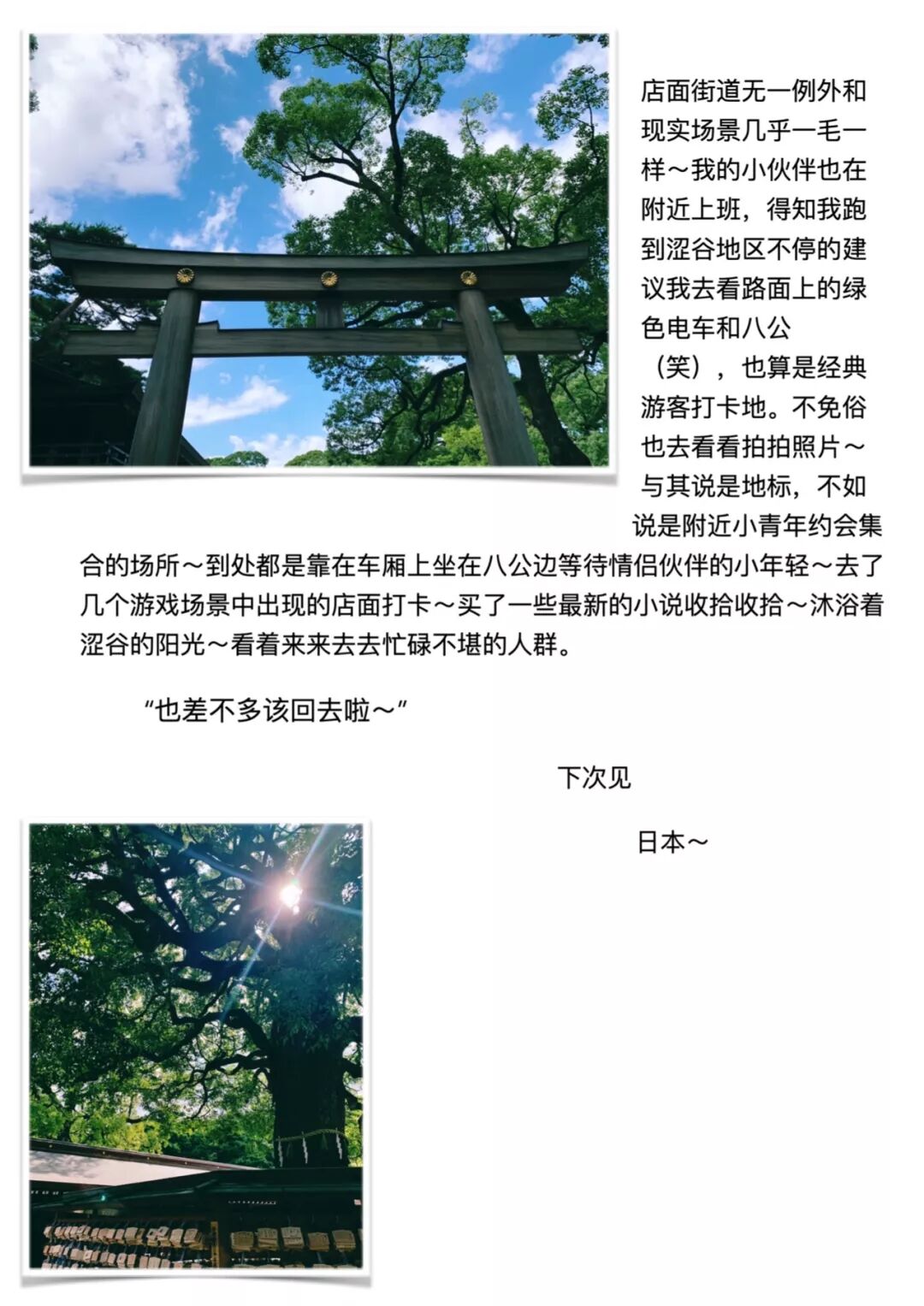 扭蛋、富士电视台、妖怪中心、留学生聚餐、明治神宫、涉谷…