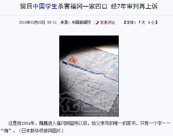 其中影响最大的要数2003年6月19日,留学生杨宁、王亮和魏巍杀害松元一家四口,劫取4万日元,并将身体铐上铁块和哑铃,沉入大海。