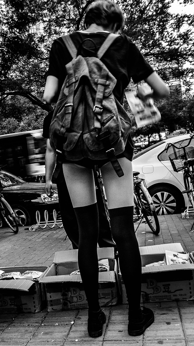 有一天晚上,我在簋街拍一个女孩,被她身边的男朋友发现了;他分明走在我前面,但他的雷达真的非常敏锐,他突然停住回头问我,你拍什么呢?我说,拍簋街啊,优异次来,这么多灯笼好好看。他一笑,说“这样啊,嗯,确实不错……”我们友好地聊了几句,最后礼貌地道别了。
