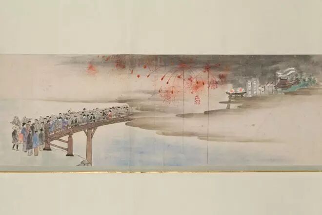 古时,花火从中国传入日本,而后几乎日本当地的花火大会都与神怪之说有关,祛除邪灵,祈福安泰是当时烟花燃放的主要目的。日本花火大会的起源,说法较为统一,始于1717年的“水神祭”。江户时代斎藤月岑著的《东都岁事记》中这样记载:“从五月二十八日起到八月二十八日止两国桥纳晚凉,并茶馆杂耍店燃放花火,逐夜贵贱群集。”