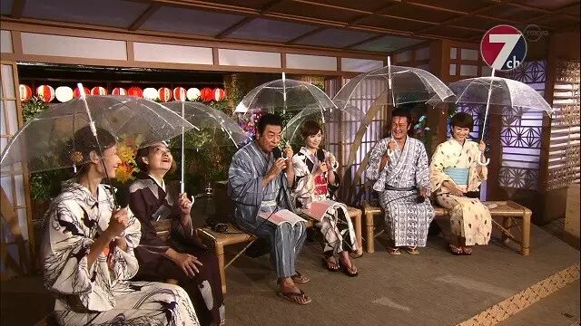 ▲ 2013年隅田川花火大会中途遇上豪雨,不得不中止。主持人在室内撑伞直播,宣布大会中止