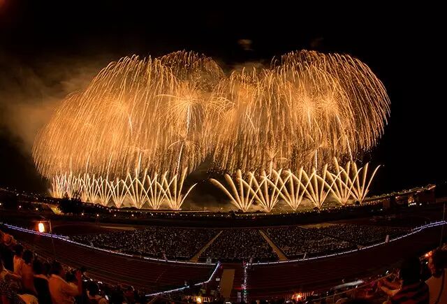 和音乐完全吻合的烟火,在全国范围内,也是为数不多的一次尝试。静谧的曲调时使用静谧的烟火,重音的地方万箭齐发。也就是说,这是一场烟花和音乐的合作秀。