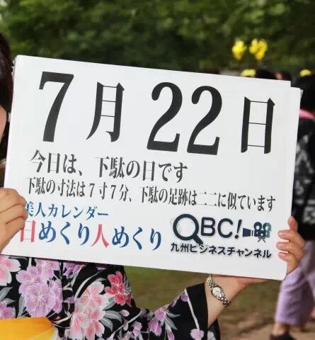 因为木屐的尺寸是7寸7分,木屐的足迹其实看着更像“二二”,而七月正好是穿木屐的季节。