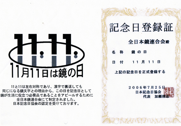 全日本镜子联合会2006年制定的,因为“1111”和竖起写的两个“11”就是左右对称的“十一十一”。