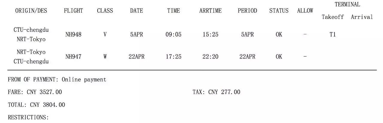 3、机票3000左右(自理)(此次老师带队去日本是坐的全日空往返,价格稍贵,为3804元)