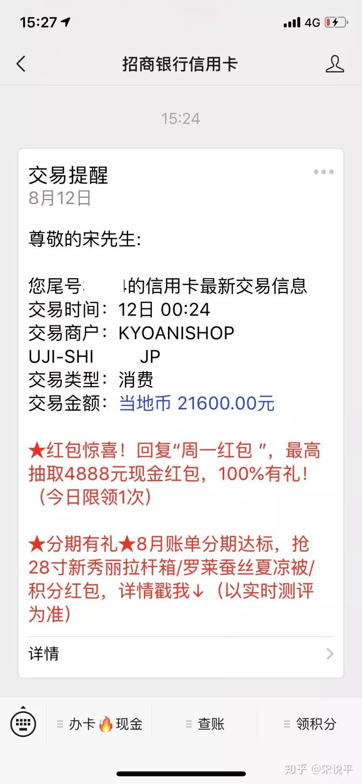 8月12日的信用卡划账通知↓