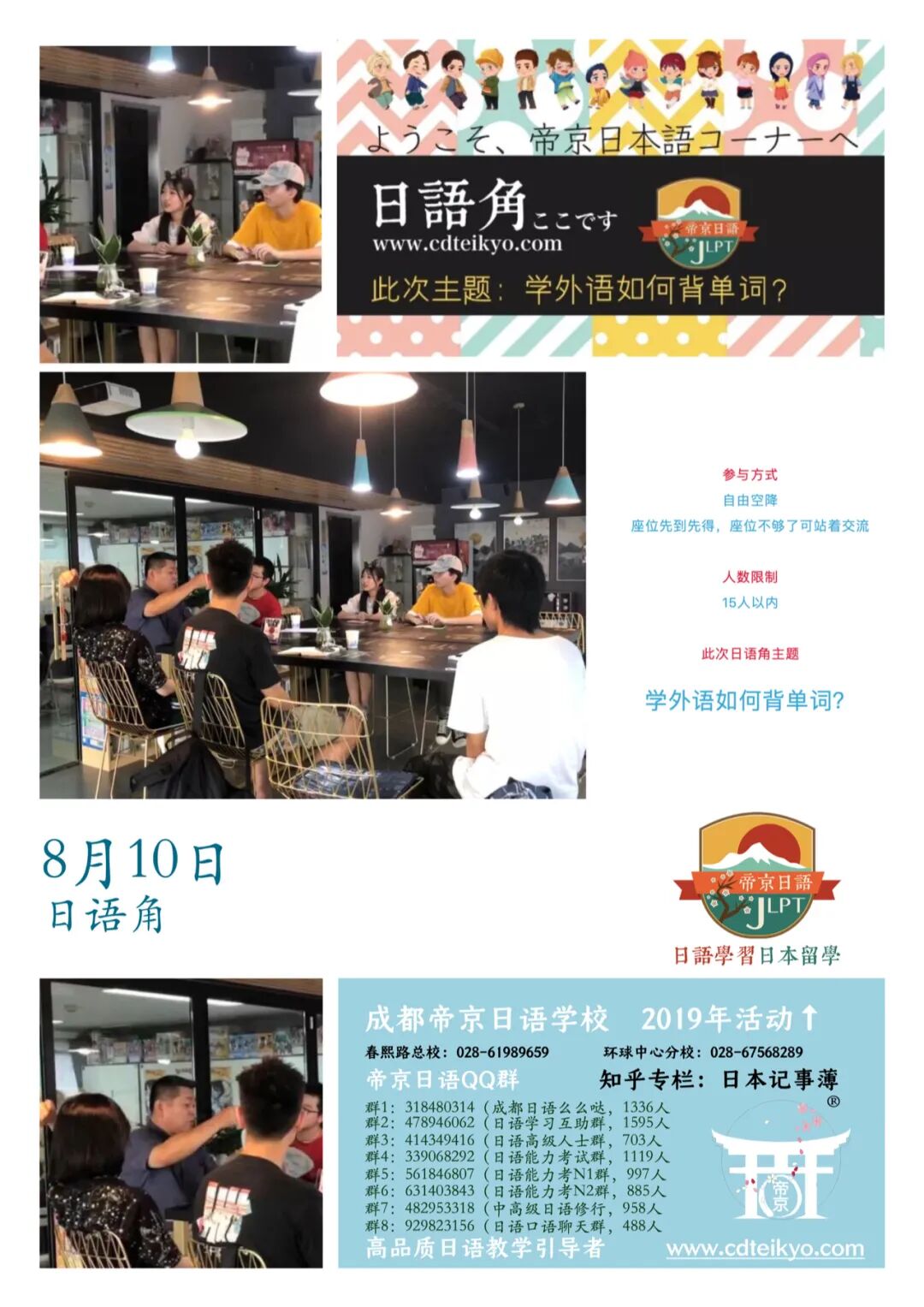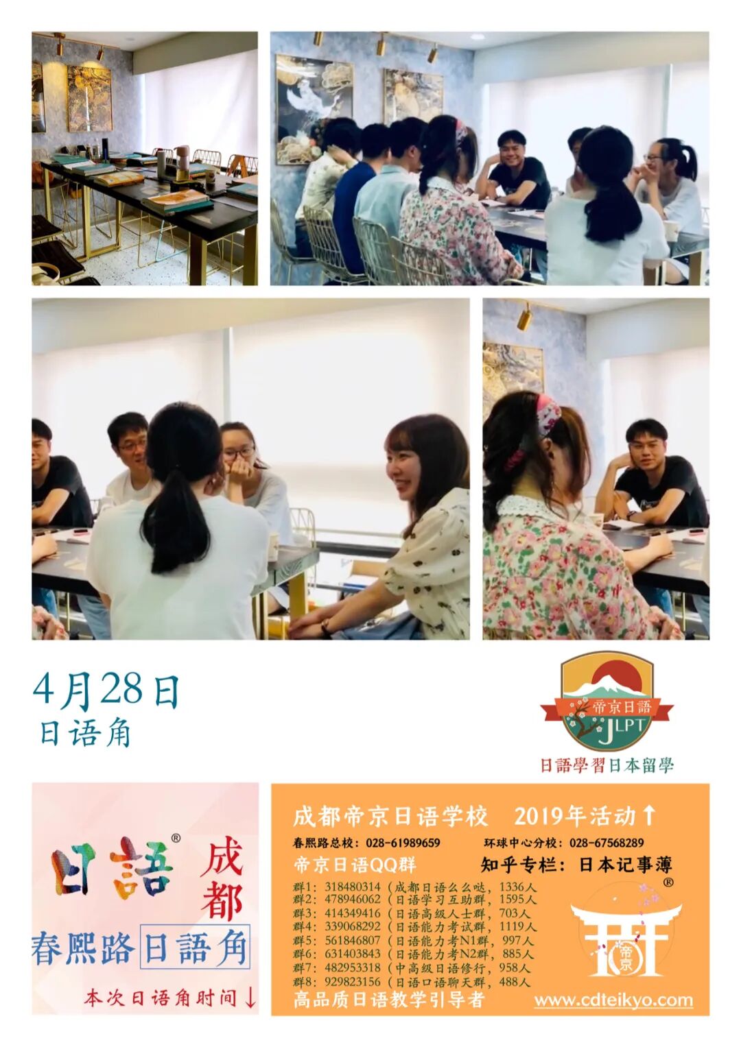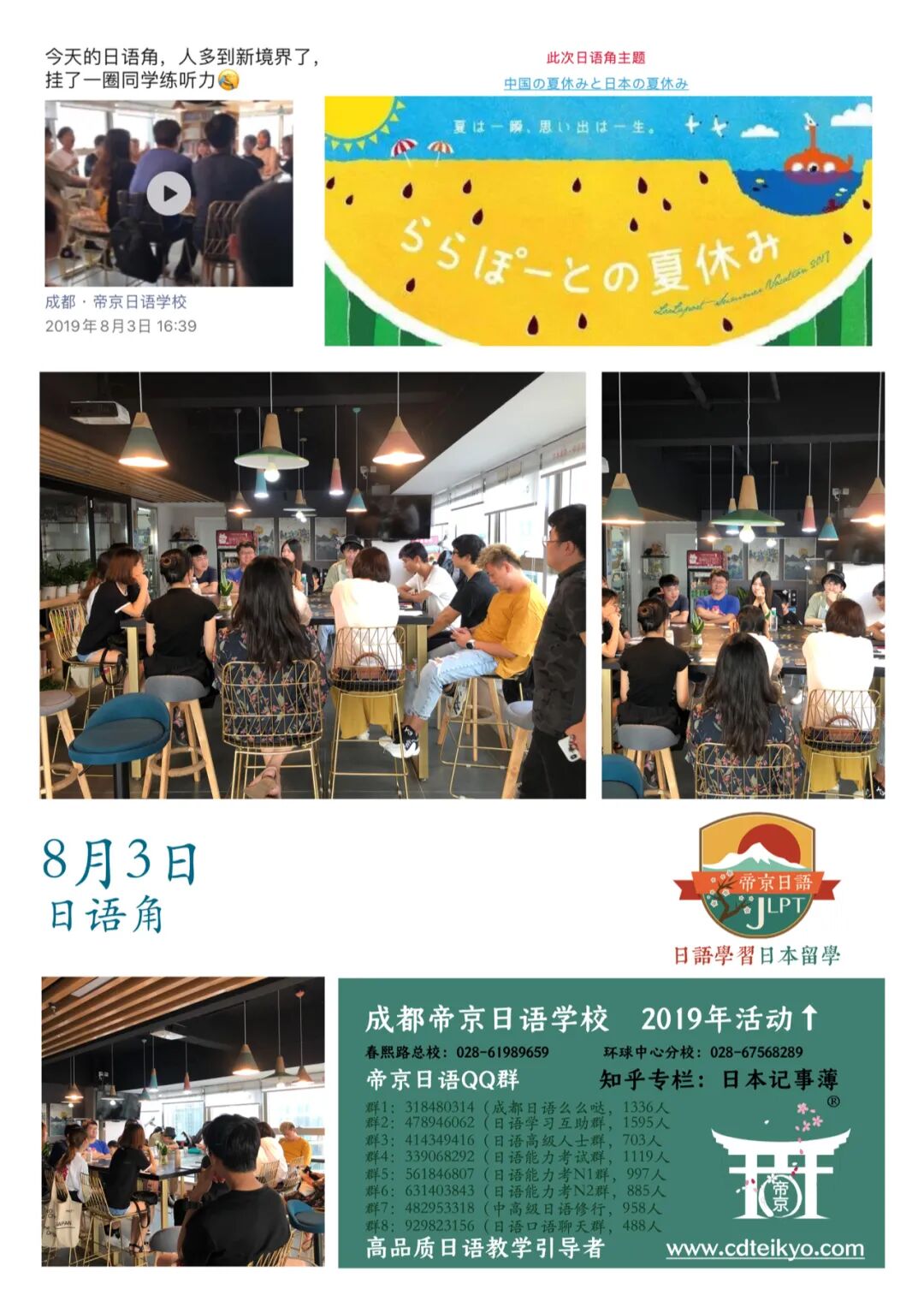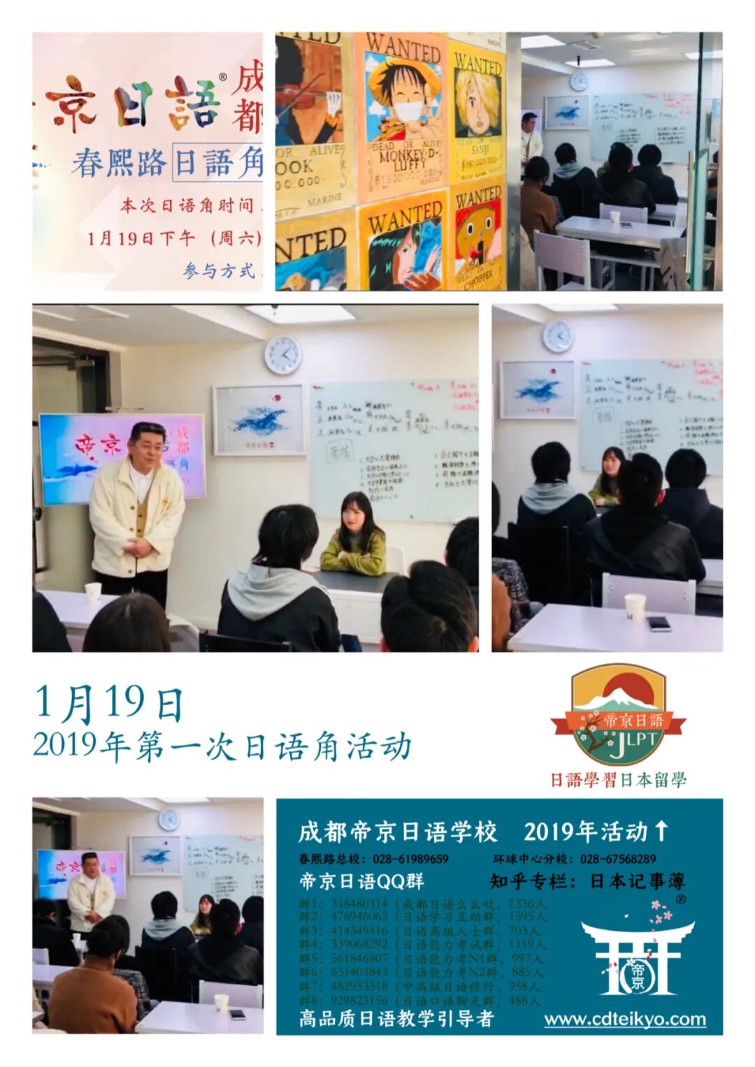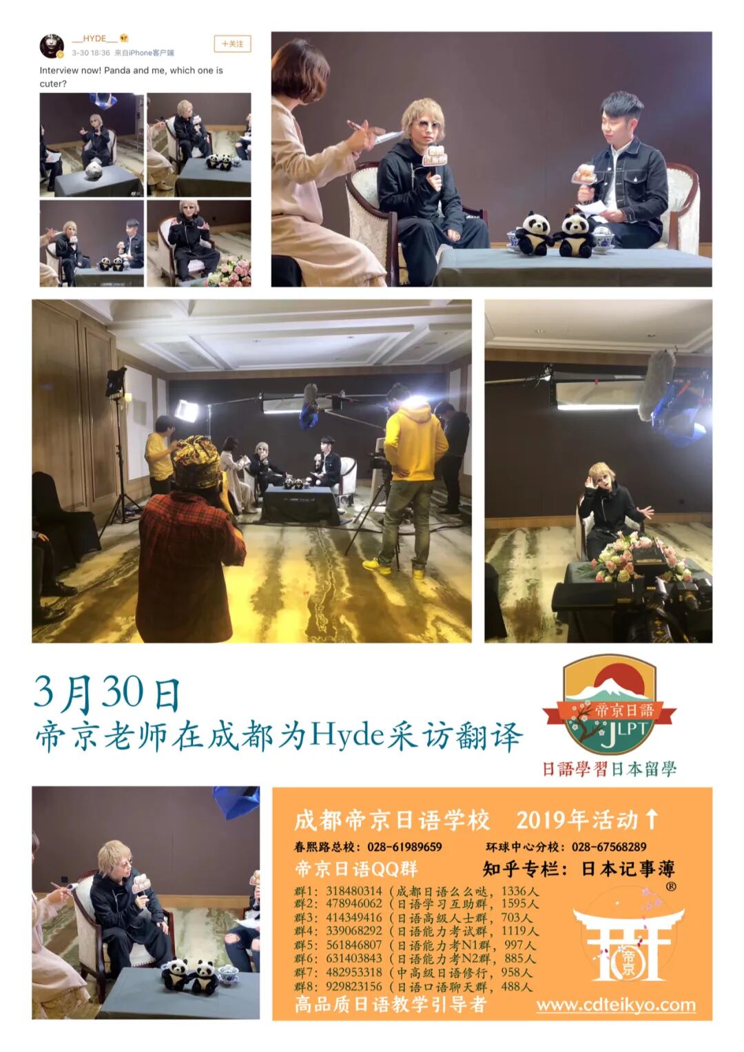 在2019年期间:帝京日语为日本明星来蓉演唱会担任翻译5次(hyde、小野丽莎、大冢爱、手岛葵、初音未来)。