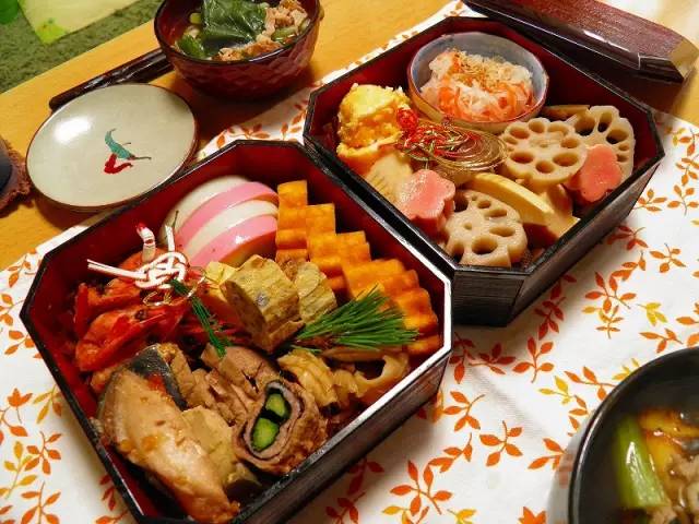 过春节,除夕夜我们有全家团圆的年夜饭,初一再串门聚个餐。日本也有一种饭,叫做「おせち」的正月料理,全家人要从1月1日元旦早晨开始,一日三顿,一直吃到正月假期结束,某些地区更长。是的,请忽略「賞味期限」的相关疑问。