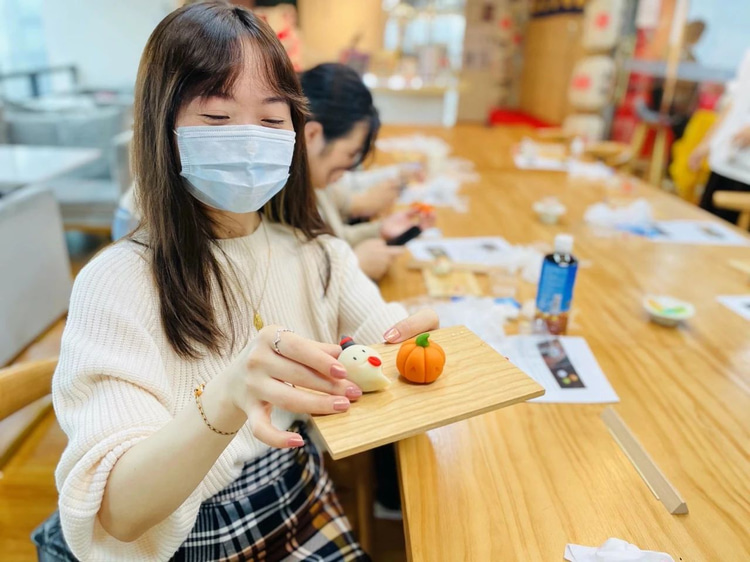 老师和同学们一起参加学习万圣节主题和菓子制作,现场每个人都很开心!
