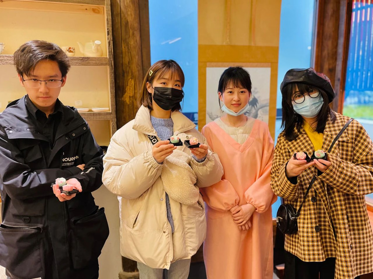 但是由于当时正在参加12月能力考的冲刺班的同学们正在上课,就错失了本次体验机会。所以在前不久我们组织了一次三月的和菓子探店活动:活动报名 | 阳春三月和菓子线下探店