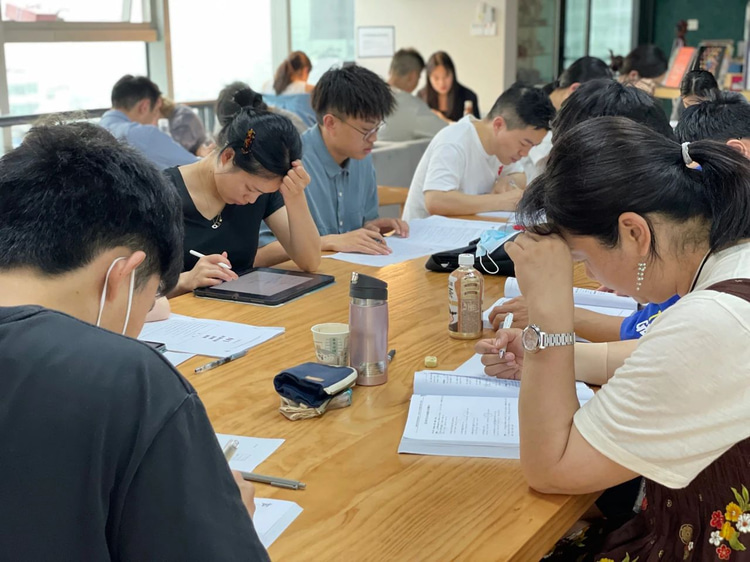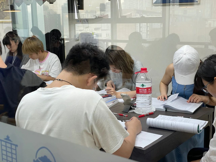本次模拟考,N1和N2两个级别共同进行。虽然正值端午节假期,但同学们还是准时到场,坐满了整个春熙路校区的自习区和9、10教两个教室。