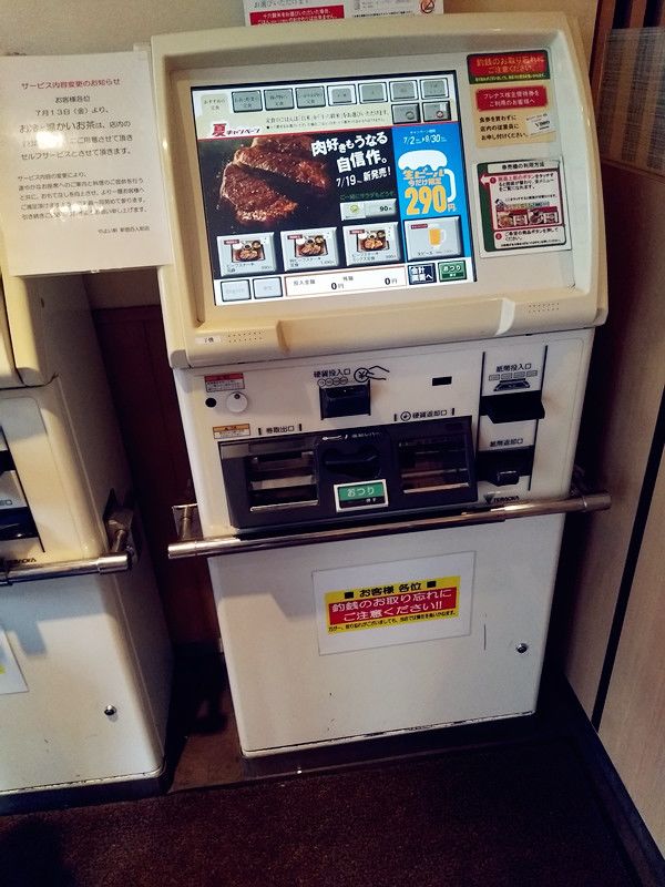 还去体验了一下和式便当,在下面这个机器上先点好想吃的东西,付款之后会吐出你的“饭票”,拿着它去找店员,然后找个你想坐的位置就可以啦~