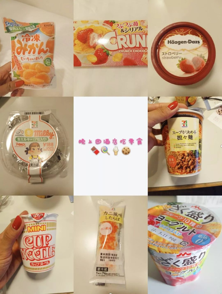 当然在日本除了这些和式的食物还有各国的美食,去吃了一次韩国料理,有一次夜宵在上野那里吃的东北菜和烤串,味道都还挺正宗的。大概因为经纬度和北方是差不多的,很多食物都和北方差不多,比如沙拉里的水萝卜菜(东北叫法),所以食物上的选择其实是很多的。每天晚上会在回酒店路上的711或者罗森买一些零食酸奶回去吃,罗森可以用支付宝这点特别赞。