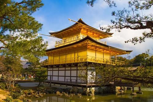 三种不同时代不同的风格,却能在一栋建筑物上调和完美,是金阁寺之所以受到推崇的原因,除此之外,效仿自衣笠山的池泉回游式庭园里有许多风格别致的日式造景,让它成为室町时代最具代表性的名园。
