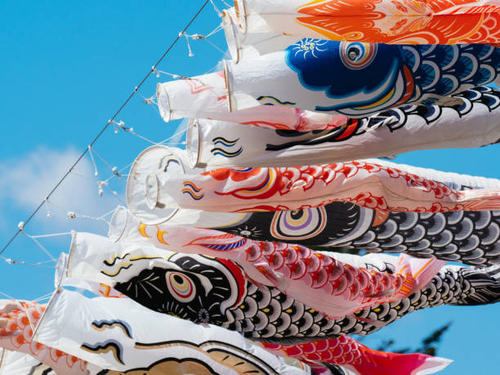 鲤鱼旗(日语:鯉幟/こいのぼり)原本是日本江户时代的武士家族,在端午(即农历五月五日)梅雨时期中的雨天,由希望生男孩的家庭在家门庭前用纸、布等描绘鲤鱼的图案,使之随风飘动,模仿鲤鱼游动的的风幡。也称为“皐幟”。明治维新改用格里历后,鲤鱼旗大多展示到阳历5月5日(日本男孩节,由端午节演变而来),作为夏天将来的象征。因为装饰的季节改变了,因此鲤鱼旗在日本人的印象中也就变成了“在晚春的蓝天里密布的东西”。