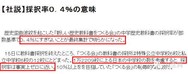 2005年篡改侵华历史、美化侵华战争的扶桑版教科书采用率不到0.4%,就被许多中国人当成全日本都使用这种教科书。