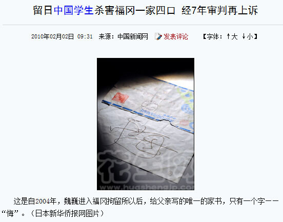 其中影响最大的要数2003年6月19日,留学生杨宁、王亮和魏巍杀害松元一家四口,劫取4万日元,并将身体铐上铁块和哑铃,沉入大海。