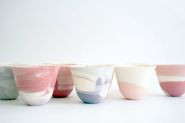 混合的色泥给每一只杯子带来了独特的色调。