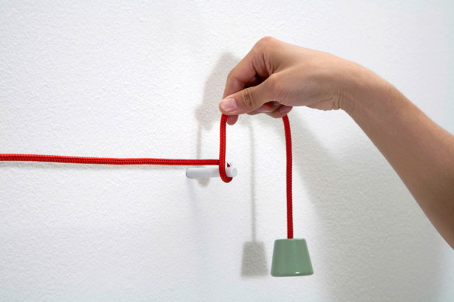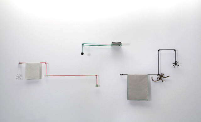 这款有趣的毛巾架,摒弃以往同类产品固定的框架结构,它看上去更加具随意性,简单的三部分:绳子、配重、固定杆构成了这款毛巾架的重要组成部分。你可以根据需要随意组合它们,在使用上给予了人们极大的想象空间。