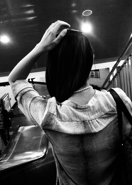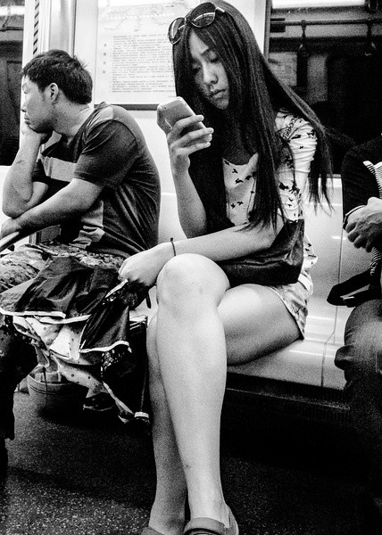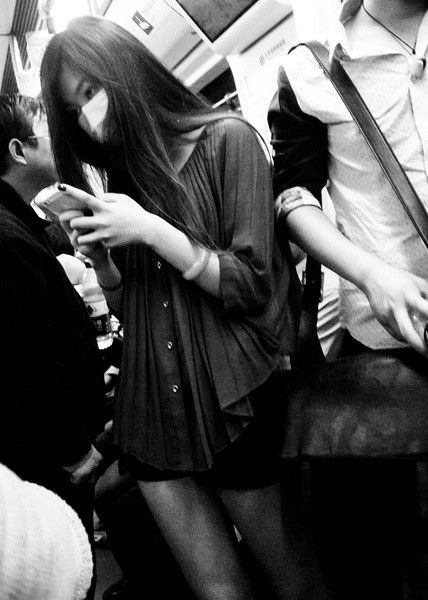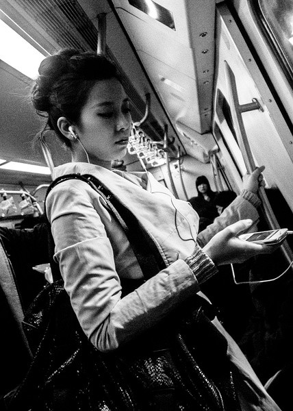 “地铁女”这个相册目前有500多张照片,算是我按题材拍得最多的一类,原因仅仅是因为我平时出门经常坐地铁(其次会选择巴士,很少打车)。过去我总在地铁里低头看书,后来拿起相机才学会抬头——这一看不得了,周围有那么多美丽的女人,她们都像做梦的婴儿一样轻轻摇晃着!