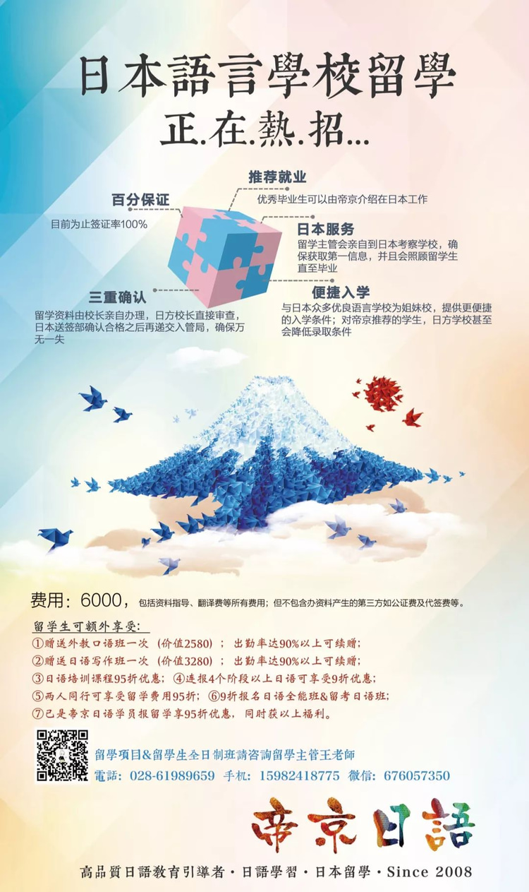 明年7月的日本留学资料已经开始办理,还有想要去留学的同学欢迎随时咨询王老师。
