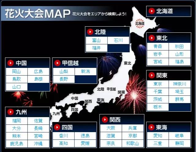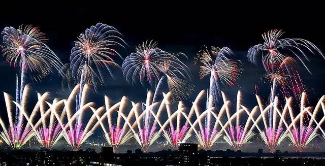 如今的日本三大烟花大会分别是:茨城县的土浦全国花火竞技大会(以下简称土浦花火大会)、秋田县的大曲全国花火竞技大会以及新泻县的长冈节大烟花大会。