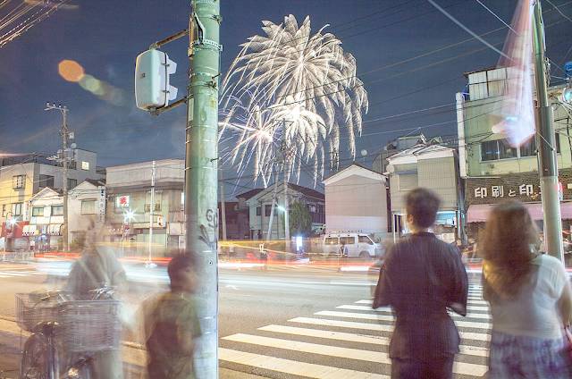 耳畔是“え”(哇)、“すげー”(好厉害)的赞叹声,眼中是烟火点缀的绚烂夜空,站在人流中的清丽少女,身着浴衣,默默把手掌地拍红,这是日本花火大会的常规场景。