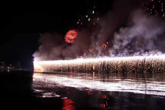 和音乐完全吻合的烟火,在全国范围内,也是为数不多的一次尝试。静谧的曲调时使用静谧的烟火,重音的地方万箭齐发。也就是说,这是一场烟花和音乐的合作秀。