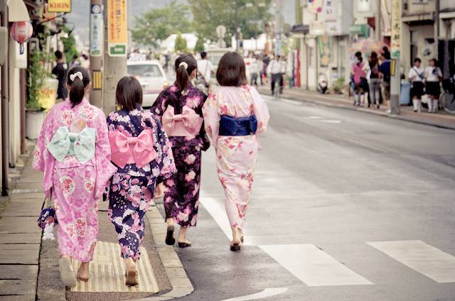 浴衣原日本平民洗好澡后穿着的简便衣物。后来,大部分日本人参加夏日祭典时也会穿。如今,穿浴衣演变为一种时尚,早已不分时间和特定场合了。