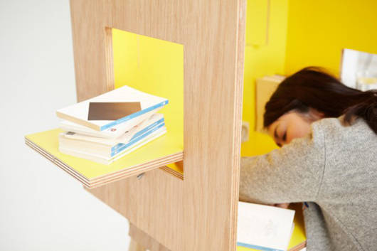 这款工作桌在一个五面的箱体中,几乎发挥了工作室的功能,独立的个体具有隔间的效果,让人可以专心地投入工作,四边的开口有点类似窗户,同时也能摆放一些零碎的小东西,就连立面空间也能好好利用,包括摆放挂钟、黏贴备忘事项,或是风格布置等等,每一处空间都不浪费。