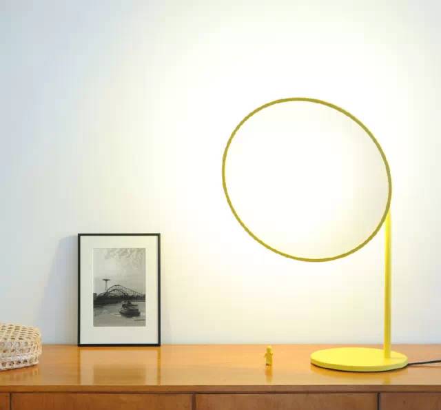 光秃秃的灯泡悄然躲在简洁的灯罩后面可以像摄影棚中的照明器材一样照射出柔和而温暖的光线,钢材、铝材、织物构成了Rim台灯的各个部分。简洁不失创意的现代造型让Rim完全可以适合很多不同家居风格的空间。