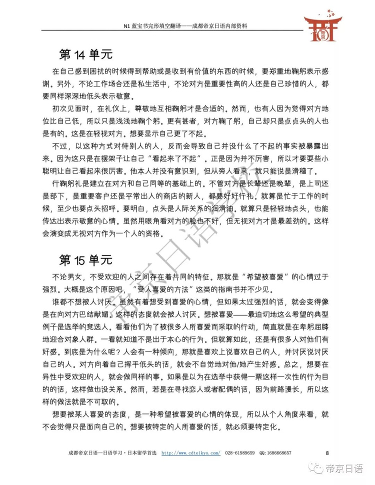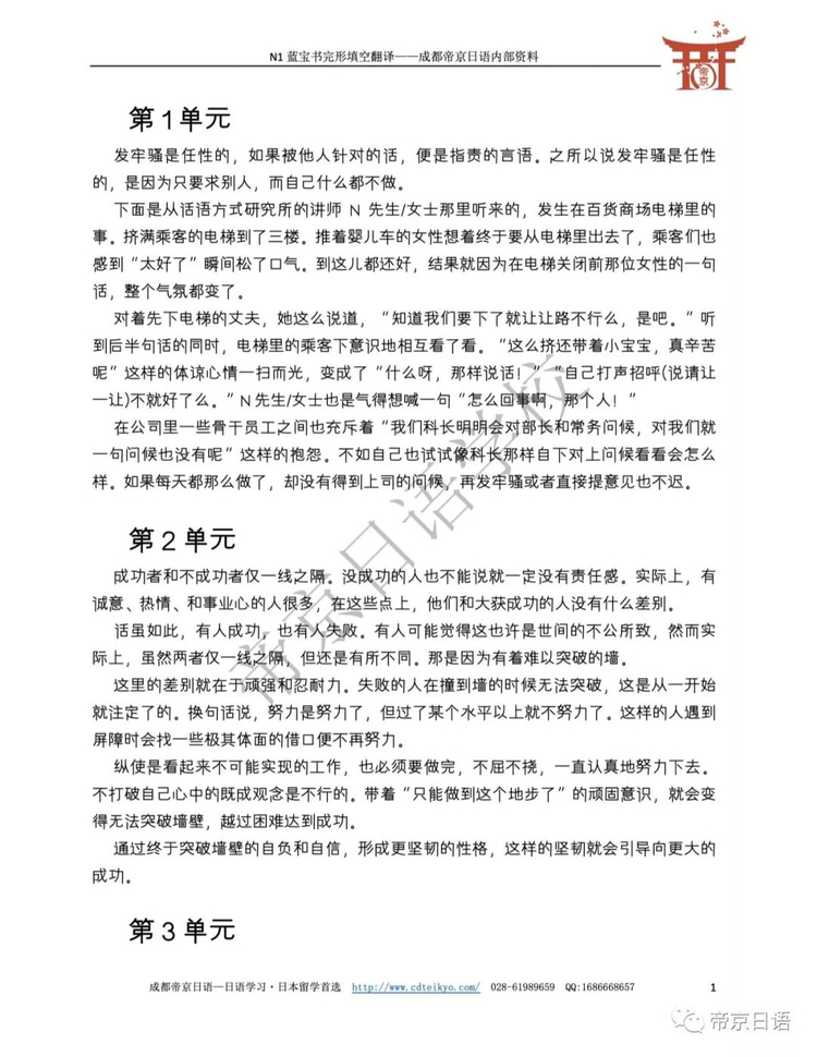 一直的努力也有了好的效果,帝京日语每年线下培训人数达1500人次,一直受到学员们的好评,全班能力考通过,学员考180分的情况层出不穷。粉丝群体也不断增多,帝京日语一直在摸索研究考试,已取得了显著效果,考试班所用的内部教材为多年教学积累的成果。每年我们都会将考级教材大部分内容免费分享给日语学习者,受到了大家的喜爱,此次真题资料也是多年积累的结果,希望能帮到大家的备考之路!
