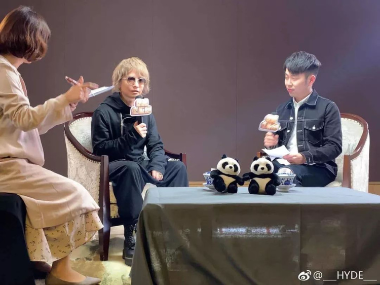 图为帝京日语路老师正在进行HYDE的采访翻译↑