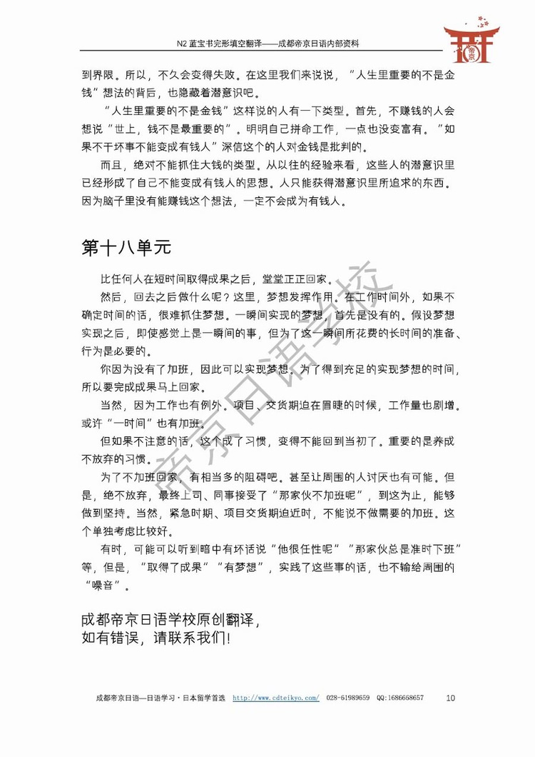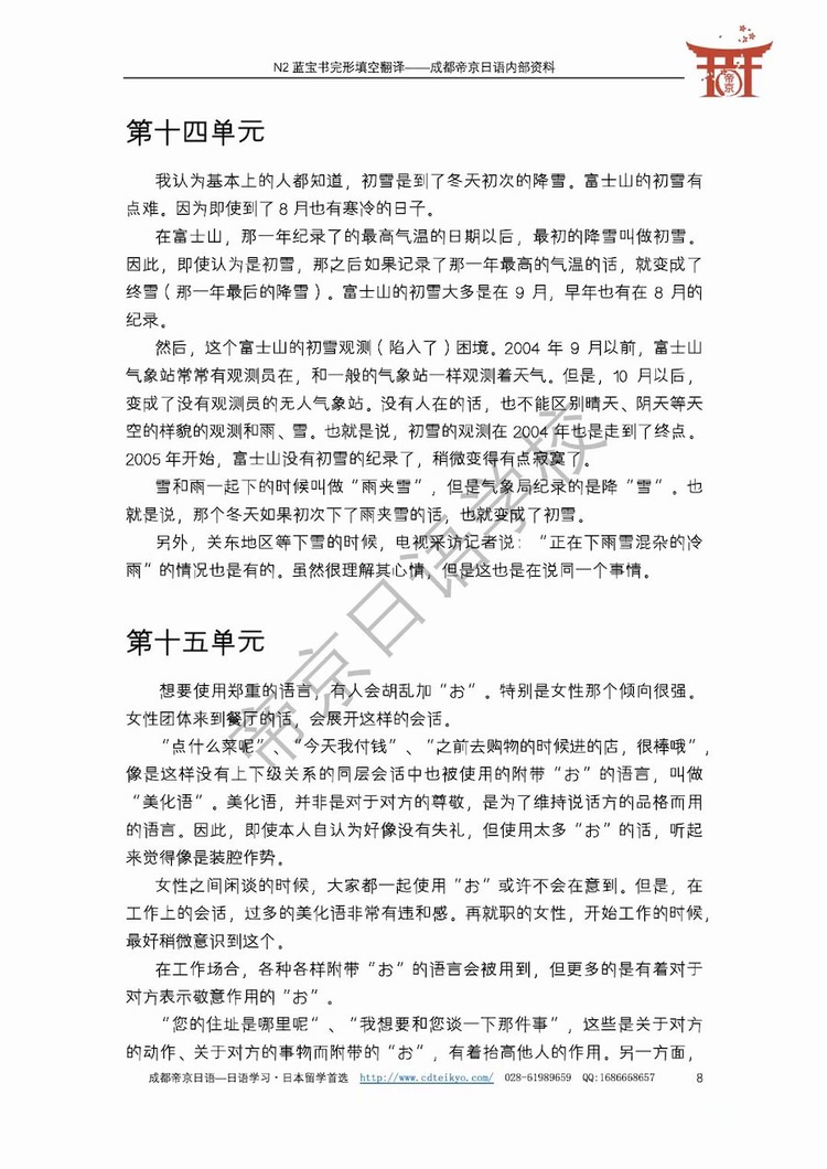 一直的努力也有了好的效果,帝京日语每年线下培训人数达1500人次,一直受到学员们的好评,全班能力考通过,学员考180分的情况层出不穷。粉丝群体也不断增多,帝京日语一直在摸索研究考试,已取得了显著效果,考试班所用的内部教材为多年教学积累的成果。每年我们都会将考级教材大部分内容免费分享给日语学习者,受到了大家的喜爱,此次资料也是多年积累的结果,希望能帮到大家的备考之路!