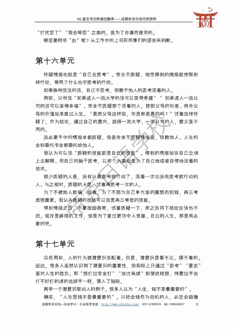 对学生的学习资料,我们也不断推陈出新,为学员以及粉丝提供了众多优秀的学习资料(如此页分享资料)。学员服务方面,9-25点课后日语问题咨询支援,建立学员学习群督促学习,解答疑问;课后举办不同的日本文化体验活动以及日语学习活动(详见帝京日语活动汇总),不断丰富大家的文化熏陶;学校更是以成都最大的日本和文化图书馆为目标,不定时大批购入日本文化相关书籍供学员阅读(如帝京日语图书室9月书单)。